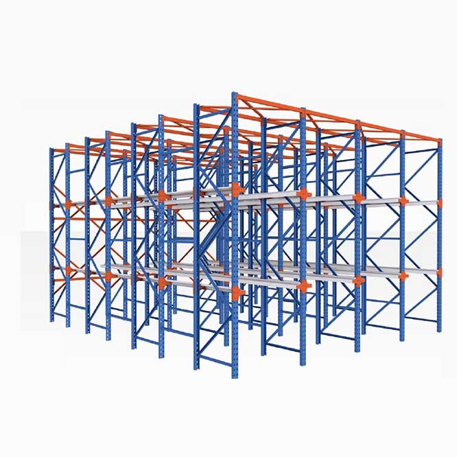 Въездные стеллажи, также известные как палетные стеллажи, позволяют вилочным погрузчикам работать внутри стеллажной системы. Въездные стеллажи обеспечивают почти вдвое большую вместимость по сравнению с обычными балочными стеллажами на той же площади, поскольку они устраняют проходы между рядами стеллажей, объединяя стеллажи и позволяя соединять товары на одном уровне и в одной колонне, максимально используя складские мощности.